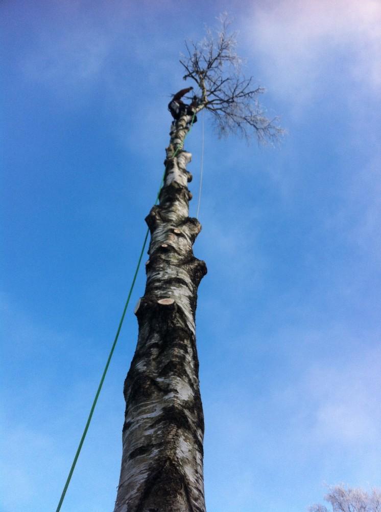 Vi utfører felling av trær i alle typer og størrelser, samt effektiv bortkjøring av kvist og stokker.